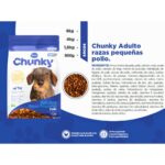 Dale a tu perro una alimentación equilibrada y deliciosa con Chunky Adulto Razas Pequeñas. Este alimento, hecho en Colombia, está elaborado con carne real de pollo, ofreciendo una fuente de proteína de alta calidad que apoya el desarrollo muscular y la salud general de tu mascota.