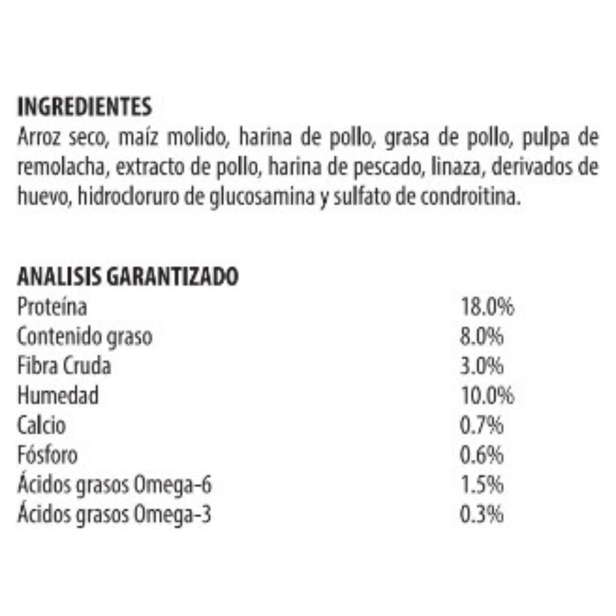 Fórmula especialmente diseñada con pollo de campo ideal para perros mayores, con sobrepeso o baja actividad. Esta fórmula proporciona todos los nutrientes esenciales que su perro necesita para mantener su salud óptima con menos calorías. Alimento de agradable sabor enriquecido con glucosamina y condroitina para garantizar la salud de huesos y articulaciones.