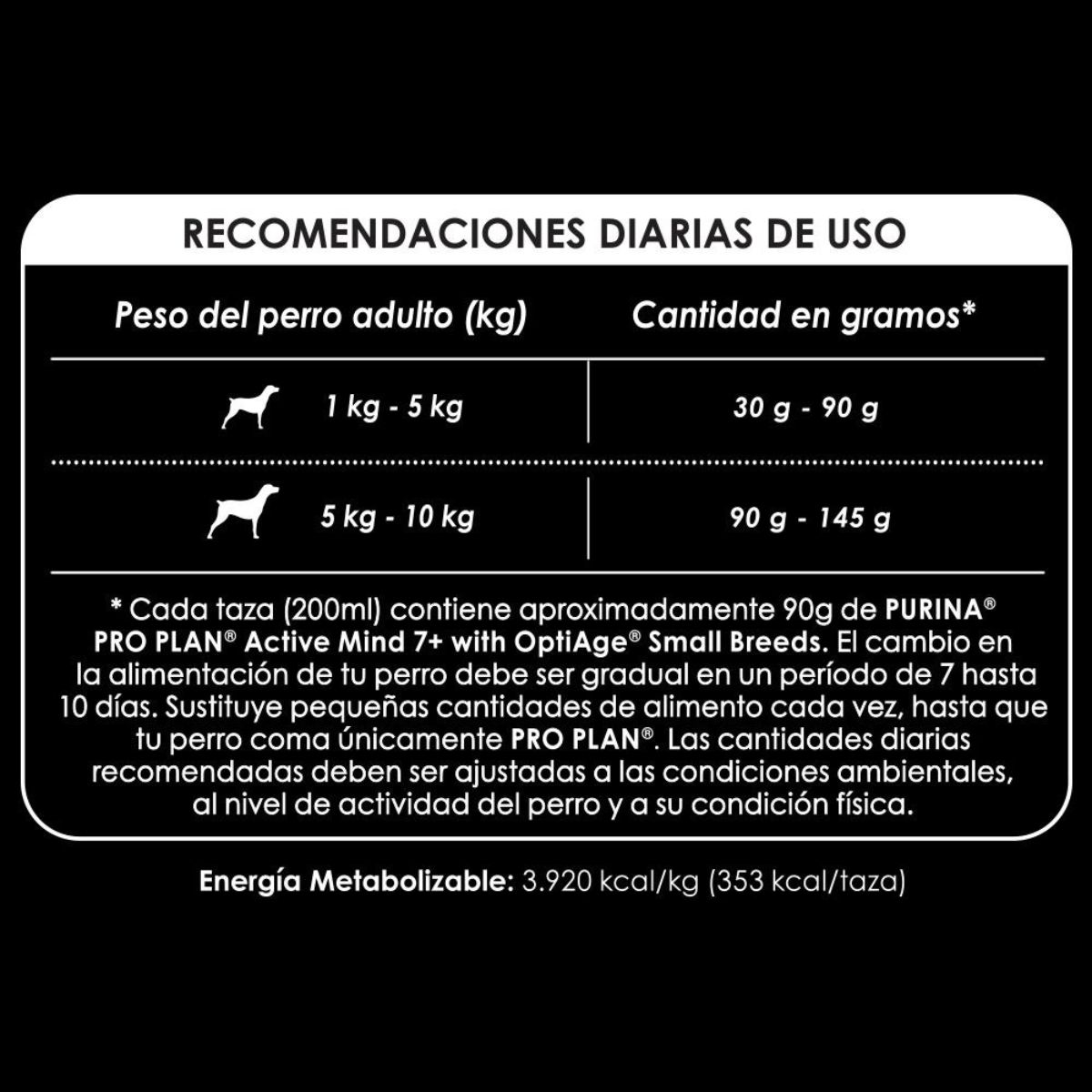 Pro Plan Active Mind Razas Pequeñas 7+ formulado con tecnología Optiage®, este alimento premium proporciona una nutrición avanzada para perros mayores de 7 años. Los triglicéridos de cadena media (MCT) de origen botánico nutren el cerebro, mejorando la memoria y la atención. Además, la glucosamina y los antioxidantes fortalecen las articulaciones y el sistema inmunológico. Con proteínas de alta calidad y sin colorantes artificiales, Pro Plan Active Mind ayuda a mantener a tu mascota activa y saludable durante sus años dorados.