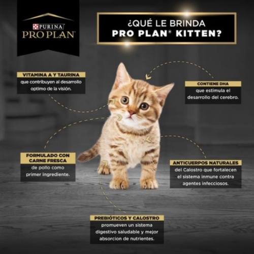 Pro Plan Kitten – Gatitos es el alimento súper premium especialmente formulado para apoyar el crecimiento y bienestar de los gatitos hasta los 12 meses de edad, así como de hembras gestantes o lactantes. Este alimento balanceado está desarrollado con la innovadora tecnología OptiStart®, que extiende la protección inmunológica que los gatitos recibieron de la leche materna. Formulado con calostro y enriquecido con nutrientes esenciales, este alimento proporciona una protección inigualable durante el primer año de vida.